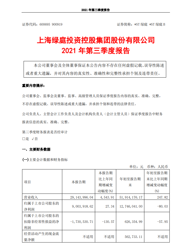 2021 年第三季度報告